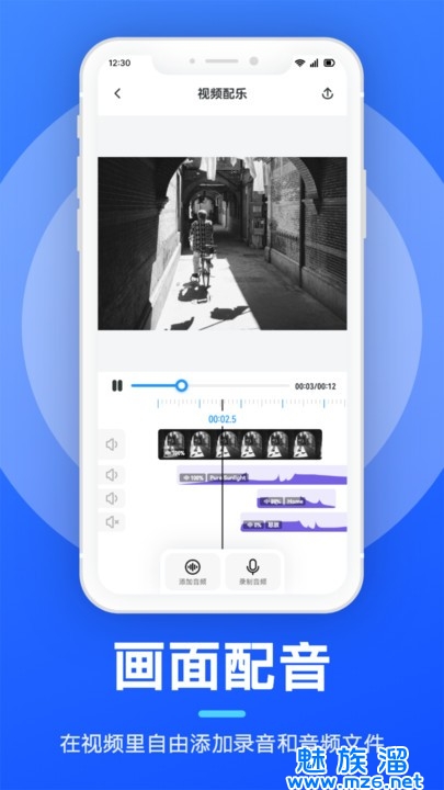 3、允许用户添加背景音乐、解释音频,并将音频调整到最佳音量和平衡。