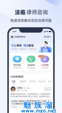 1、高精度匹配:用户选择问题、选定领域、输入关键词,APP即可为用户匹配专业律师。