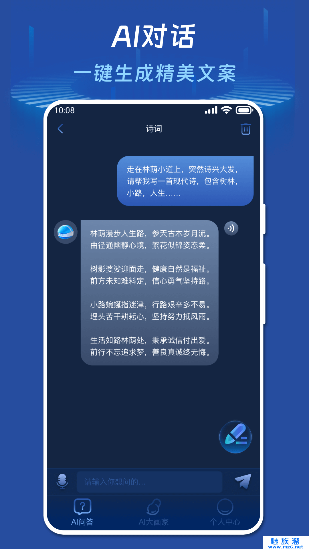 AI你问我答,一款智能的机器人软件,是和机器人在线聊天的软件哦,在这你想问任何的问题软件都是支持的,会根据大数据来随时进行回答,且软件中还提供专业的翻译,涵盖的领域更是极其广泛的,所以尽管来放心下载询问,或是聊天。