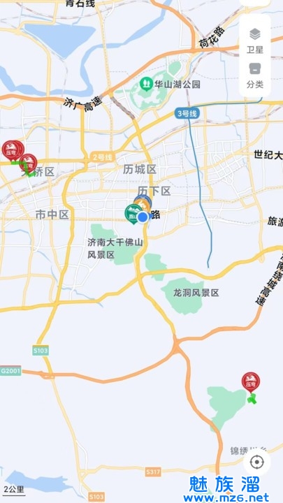 4、内置兴趣点功能,可以方便地查找周边的美食、酒店、加油站、维修站等。