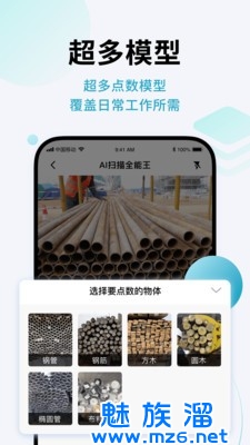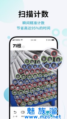 1、拍照计件,智能AI识别照片物体数量,支持钢筋、钢管、椭圆管、圆木等多种物体。
