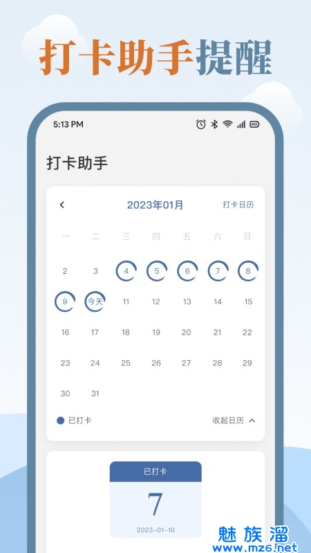 3、提供了完美的打卡系统,帮你记录练字的日期、每天练字的时间以及练字的个数。