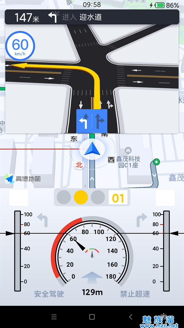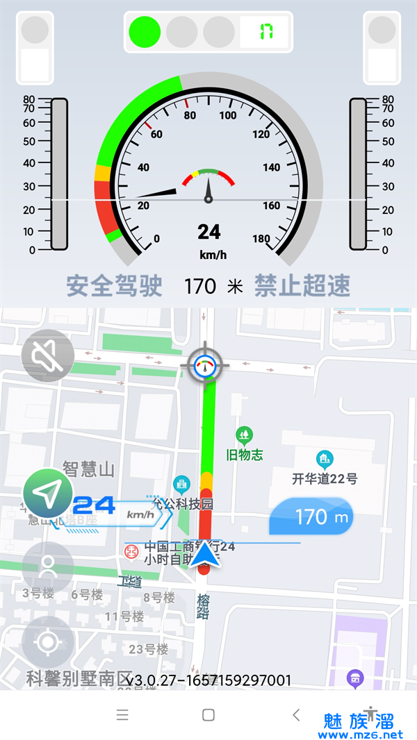 4、车辆根据速度提示,只需将车速控制在绿色速度区间即可;