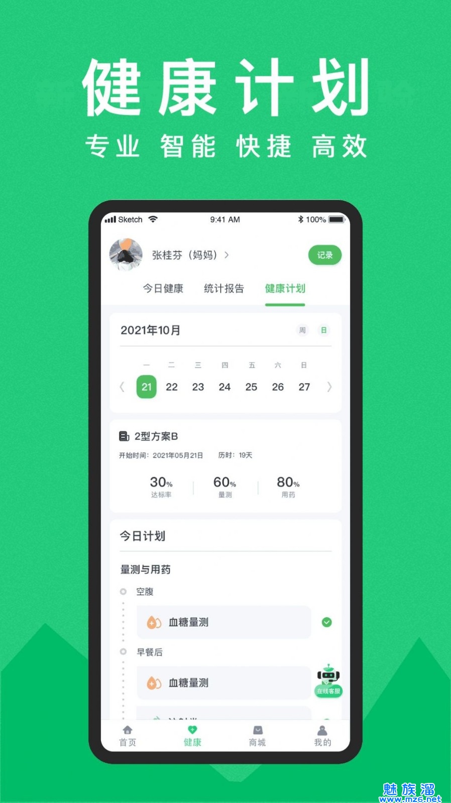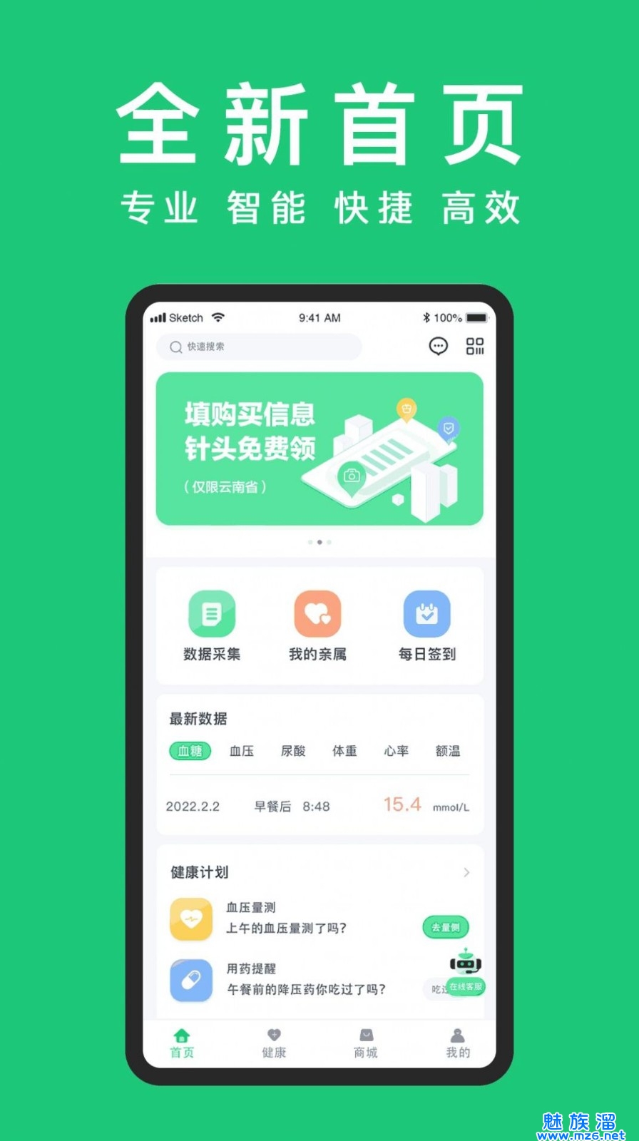 1、可以通过健康档案管理自己的健康信息,如血压、血糖等数据,随时查看自己的健康状况;