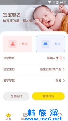 宝宝取名起名软件,这是一款比较好玩的取名字的软件按,软件会智能的匹配到更多的名字,中华文化博大,所以取名字还是有着很多的叫法的,同时软件也会推荐一些好听的名字,超级的全面哦,你可以选择一个好听的名字,也可以让大师取名。