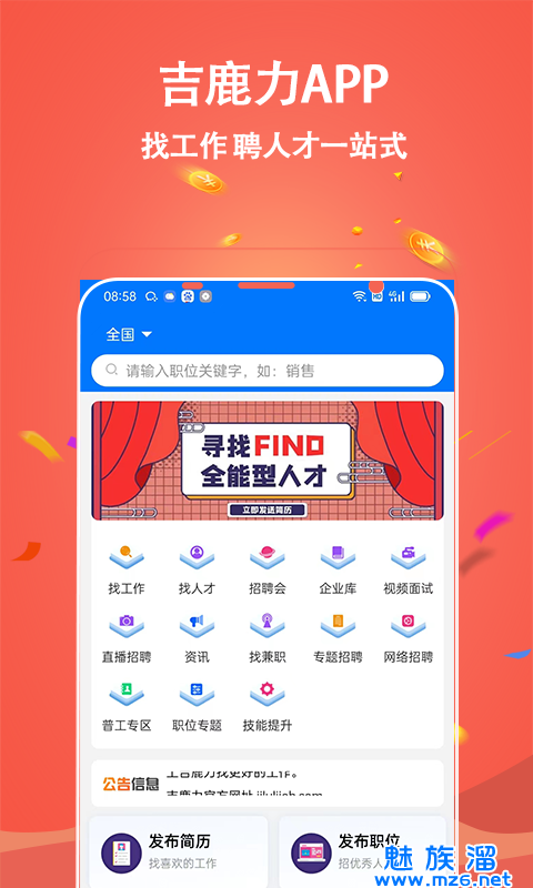 吉鹿力,正版的求职招聘软件,这里的岗位,以及企业都是真实的,想找工作的话,不妨来下载这个软件,每天都在更新岗位,会是特别快速的找到工作的,所以你不用担心,尽管来下载找工作吧,支持制作电子简历哦,也可以和人事聊天。