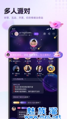 1、基于语音聊天,兼备文字聊天,使用户不特定地与他人交谈。