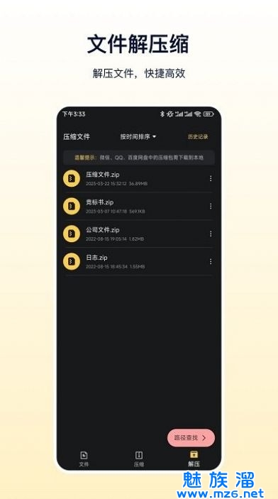 2、可以智能识别相同文件格式并直接解压,从而避免了用户繁琐的点选操作。