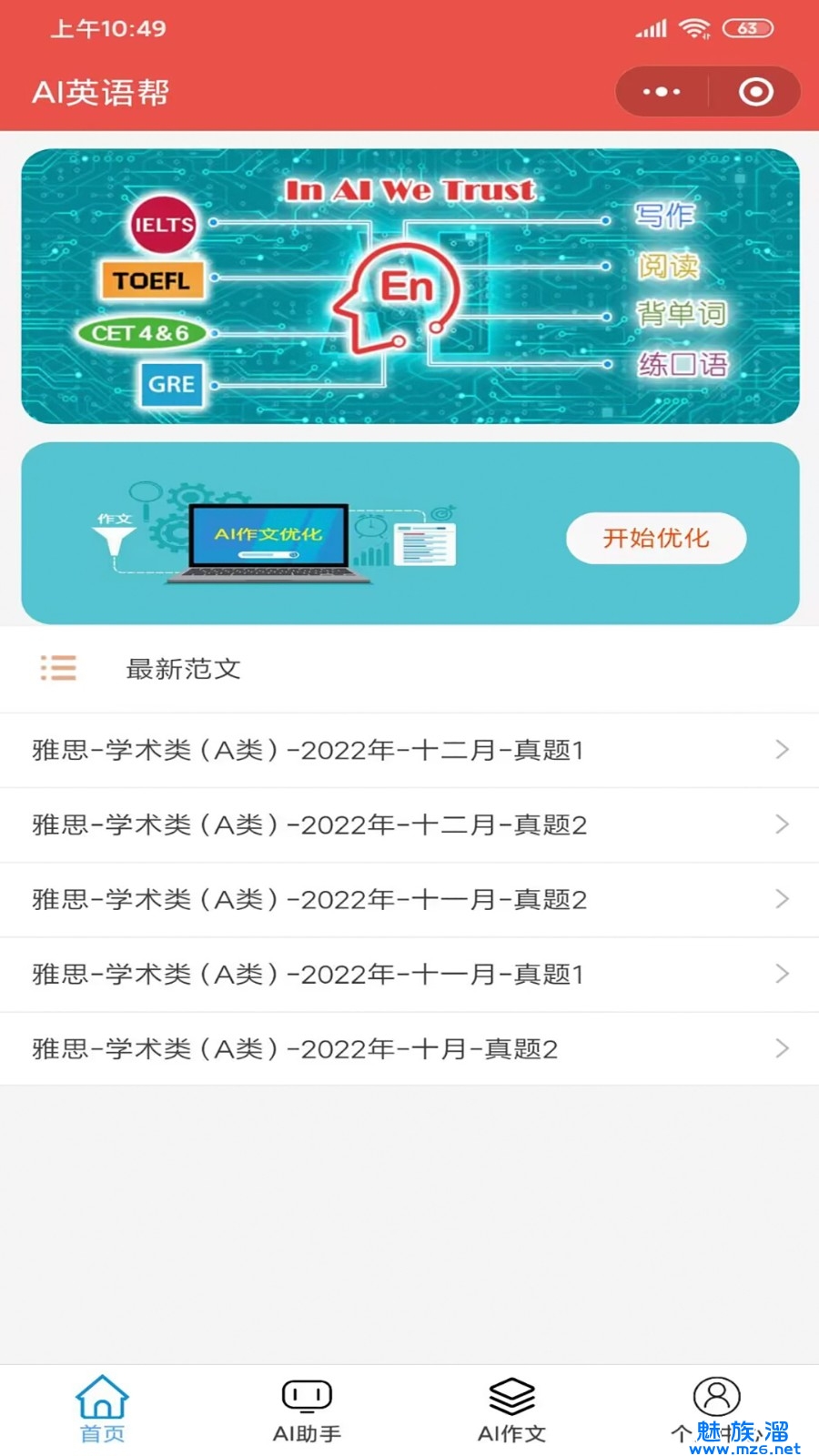 3、还有AI助手、AI背单词、AI作文等功能。