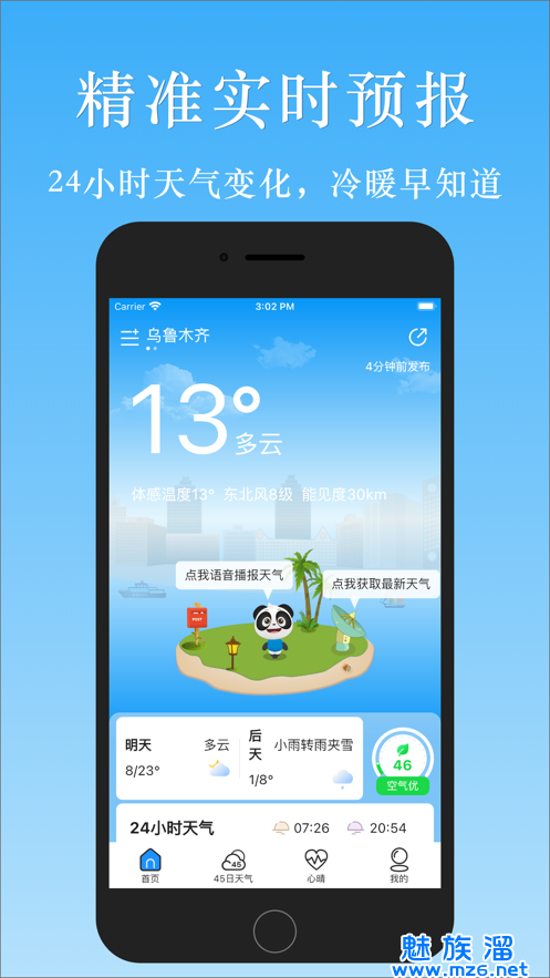 ·语音播报:可爱的熊猫助手小汇,只要轻轻一点,即可为您语音播放当前的天气预报