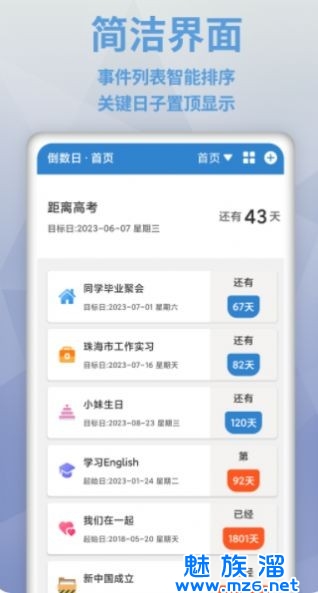 2、倒计时事件可以自由排序,方便用户进行优先级管理;