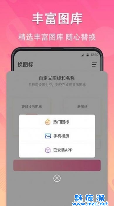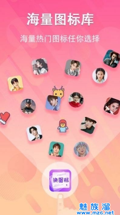 一键快捷换图标,可以更换图标的软件,软件支持更多的图标美化素材,并且也支持使用自己手机里面的图片进行美化哦,海量的素材库,都是可以直接来使用的,自定义来设置字体和颜色,更换更加个性化的图标,打造个性化的桌面。