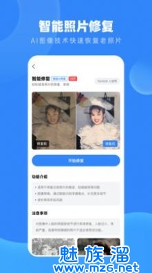 2、拍照修复功能,现场修复低质量照片,旅游拍摄好伙伴。