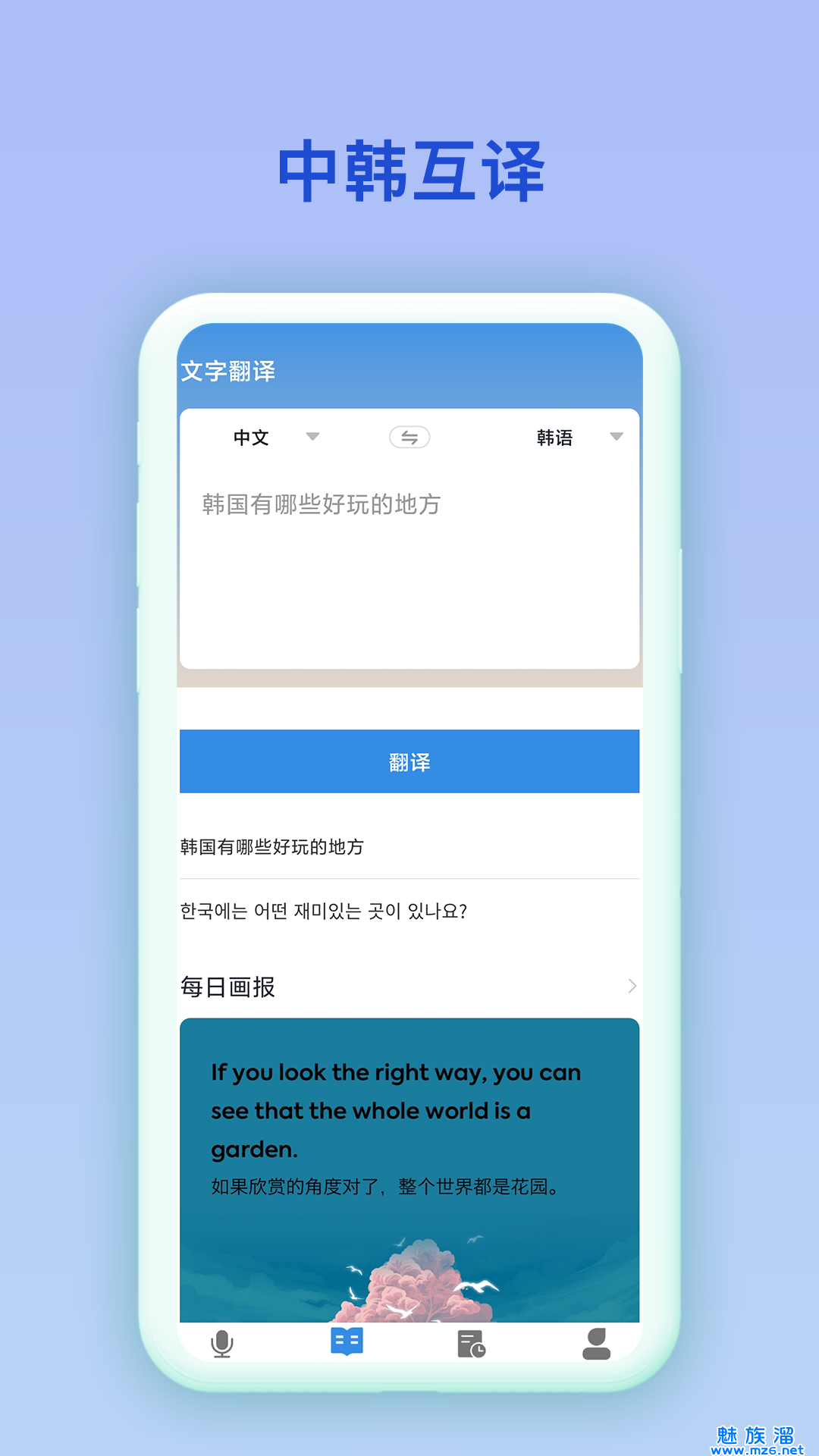 中韩互译翻译,专门为韩文翻译的软件,这里的韩语十分的丰富的,无论是文件,还是常用语等,软件都是支持来翻译,支持离线翻译哦,不需要来联网也可以翻译,适合不同的场合使用,支持手写来输入,每天都精选优质的内容,一键翻译。