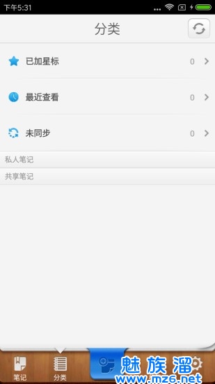 *在查看的时候可以按照日期来进行浏览,也能够按照以往的分类进行查看,并能够对笔记添加星号。