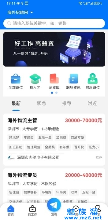 海外招聘网,软件是一款海外求职找工作的软件,帮你迅速地找到自己所心仪的工作,是款比较好的使用的海外找工作的软件,这里会让你找到满意的工作的,涵盖的领域以及其他的市场等都是不错的,也有着专业的培训哦。