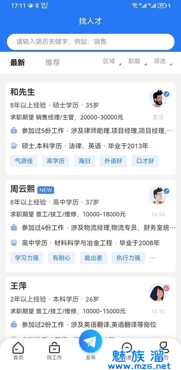 1、免费对企业和求职者提供人才推荐服务,为用户节省时间和精力;