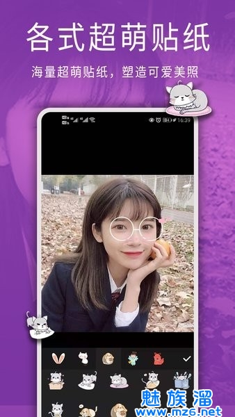 4、滤镜、文字、特效、贴纸、表情等各种资源非常适合,可以自己更换背景图。