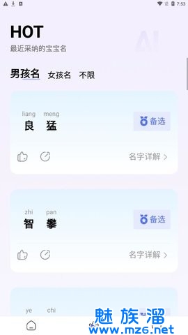 童牧起名,不错的一款取名字的软件,使用人工智能来取名,引经据典,中华文化的汉字,有着很深刻的含义的,这里会根据各个的情况,出生日期,生辰八字,属性等等全方面的考虑宝宝的名字,你可以选择一个你喜欢的,信息也是比较全面的。