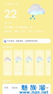 2、将天气情况分为了每小时、每天进行展示,方便用户更加清晰地了解天气的变化情况;