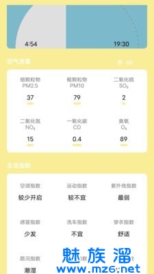4、提供气象图、即时气象警报、城市空气质量指数和日出日落时间等实用功能。