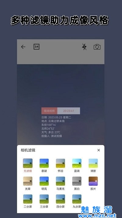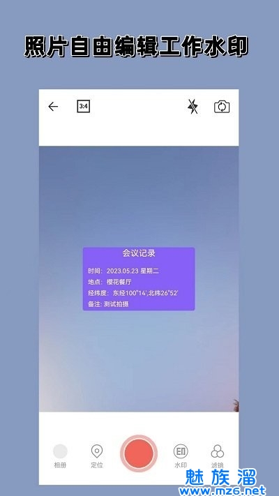 3.它还可以提供实时预览功能,让用户可以在拍摄照片前预览水印效果,以便更好地选择水印样式和位置。