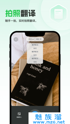 4、拍照翻译,对着要翻译的文本进行拍照,就能轻松翻译功能。