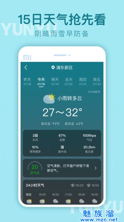 云雨天气,需要手机上看天气的小伙伴们来试试这个软件吧,简单了解天气的变化吧,出门之前打开软件看看是很方便的呢,让大家可以自由关注最新的天气内容呢,信息详细看的呢,给大家更好的体验,实时数据,来试试云雨天气。