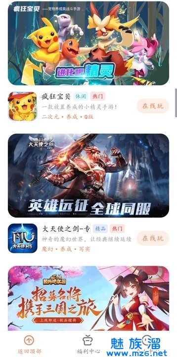 游戏种类齐全,从休闲益智,到动作战争,再到角色扮演。
