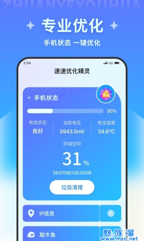 速速优化精灵,专业的专门为安卓手机打造的手机优化清理垃圾的功能,这里的随时都可以来释放你的手机的内存空间,再也不会卡顿,清楚一些残留的文件,且界面也是简单的,这里的支持一键来清理,可以定时自动清理哦。