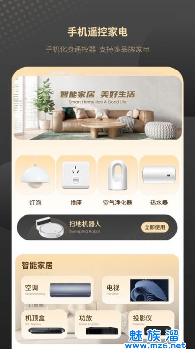 3、不同电器拥有不同的遥控界面,根据现实的功能服务来遥控,用手机就能轻松遥控家中电器。