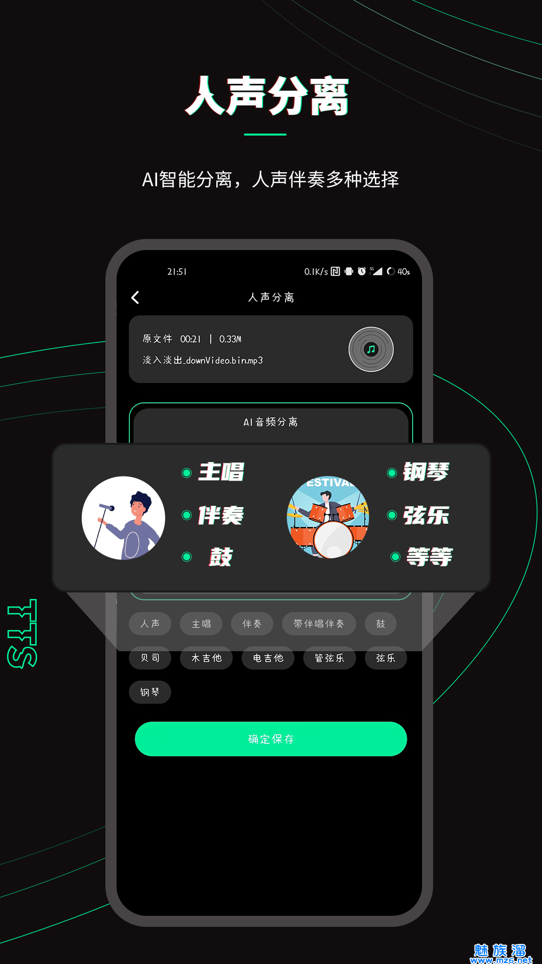 7、人声分离:将伴奏与铃声分离开来,让不同的声音释放不同的魅力;