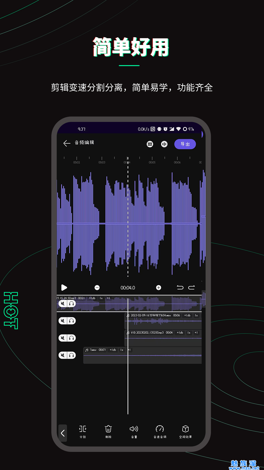 1、独特的音频剪辑技术,支持高品质剪辑;