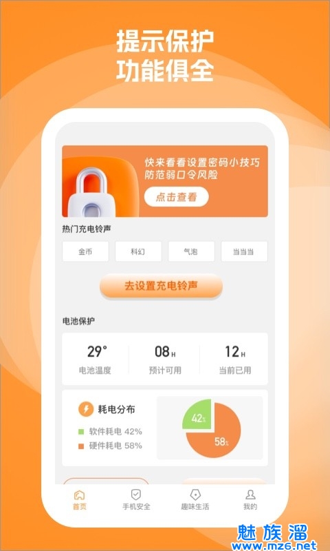 1、多种充电声音提示,让你享受极致的充电体验,喜欢什么样的声音就设置什么样的声音。