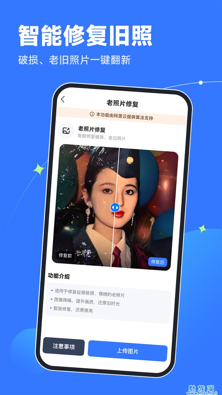 老旧照片修复器官方版下载,在这个软件内给大家比较方便的手机修复类型的体验呢,功能是比较齐全的哦,满足大家的修复功能呢,还算是很不错的呢,给大家比较好的修复设置呢,满足大家的需求哦,内置超多功能,试试看吧。
