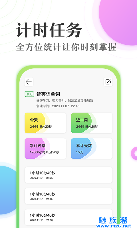 · 让您专注于当前计时任务,有效提升目标任务完成效率