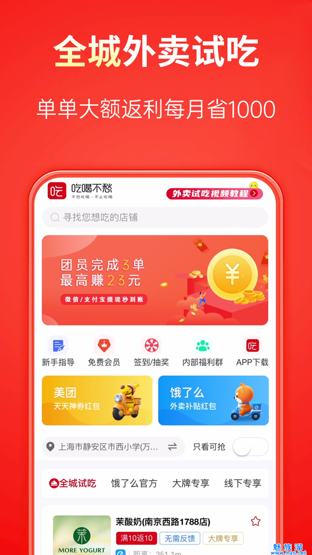 吃喝不愁,是款比较方便的点外卖的服务的平台,这里涵盖超多的门店,你家附近的所有的有着外卖服务的门店都支持来找到,且在这点外卖是比较的划算的,是有着优惠券的使用,可以跨平台来登录,每天签到,分享等都是不错的。