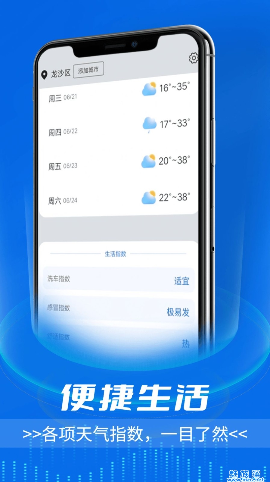 3、天气生活指数:全面了解晴天和雨天,并根据天气轻松安排室内和室外活动;