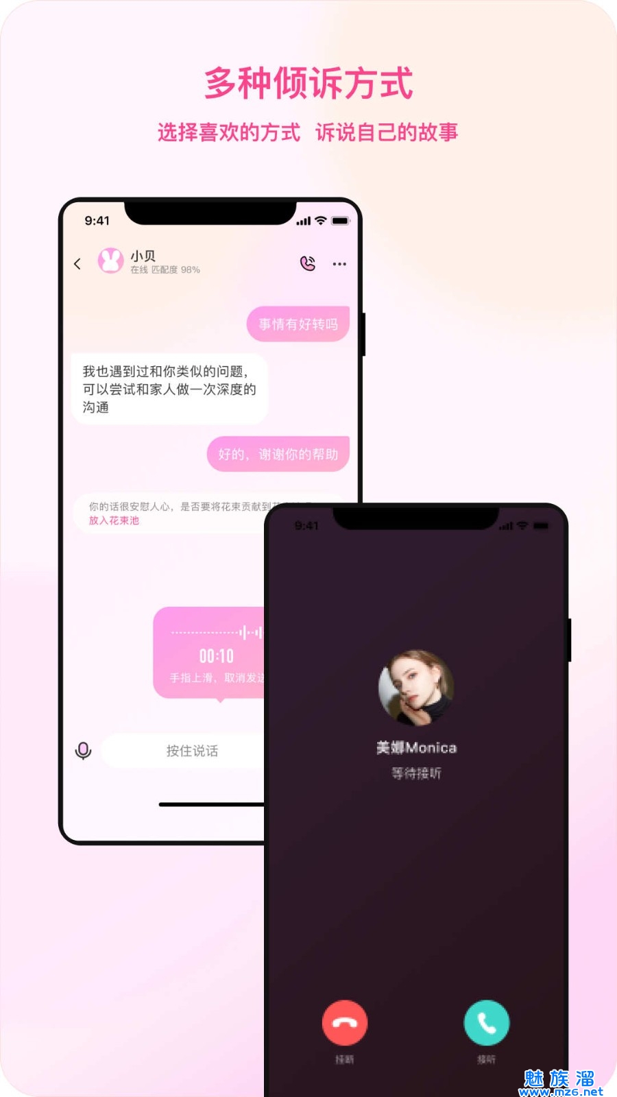 3、支持实时语音、文字、图片等多种交流方式,随时方便用户随时倾诉。