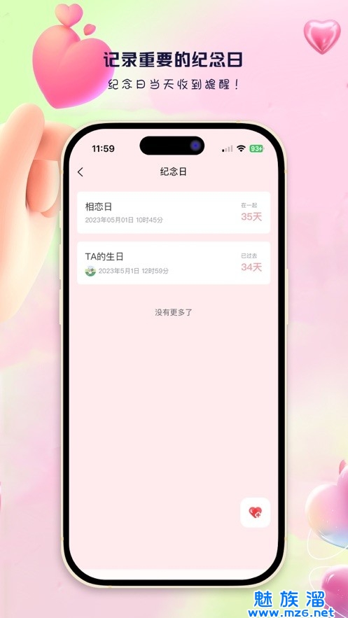 3、设置提醒:支持提醒功能,用户不用担心忘记什么纪念日啦!