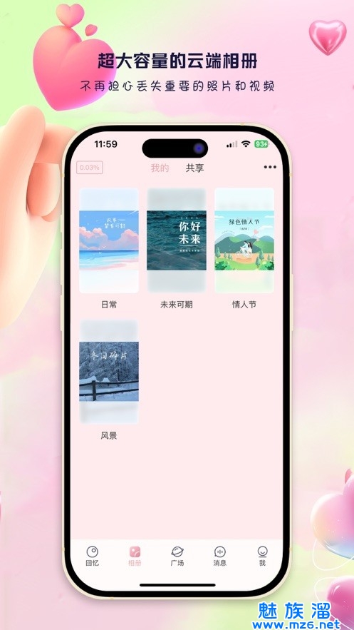 4、将美好的回忆保存到云端,免去手机空间不足的烦恼,并且可以随时随地回忆这些美好的瞬间。