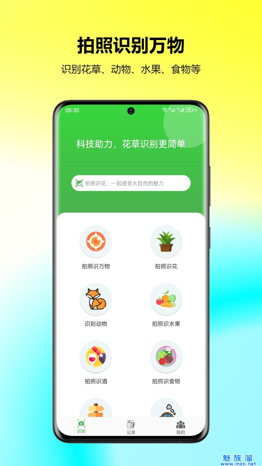 1、花卉识别:只需要用相机拍一张花朵的照片,就会智能识别该花卉的品种和名称;