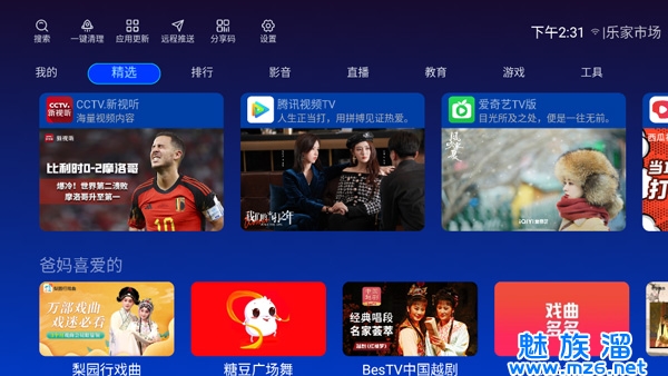一款电视上的应用市场,内含丰富的电视应用,优质的TV安装和设备整合功能,轻松安装到电视上,你的电视也可以功能多多