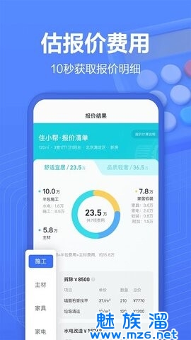 大数据科学算法,十秒钟轻松计算装修预算,平台在线设计师及当地装修公司均提供免费专业咨询服务,提升装修质量及空间利用,帮你装点理想家。