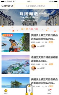 企鹅游记app是一款为用户提供便捷旅游生活的记录平台,这款软件拥有非常全面的功能,用户在这里可以将自己的每一次出行都完全的记录下来,不管是以文字还是照片的形式都是可以的,一键点击即可加入到这里,还有各种优惠打折的汽车票酒店等你来体验哦~