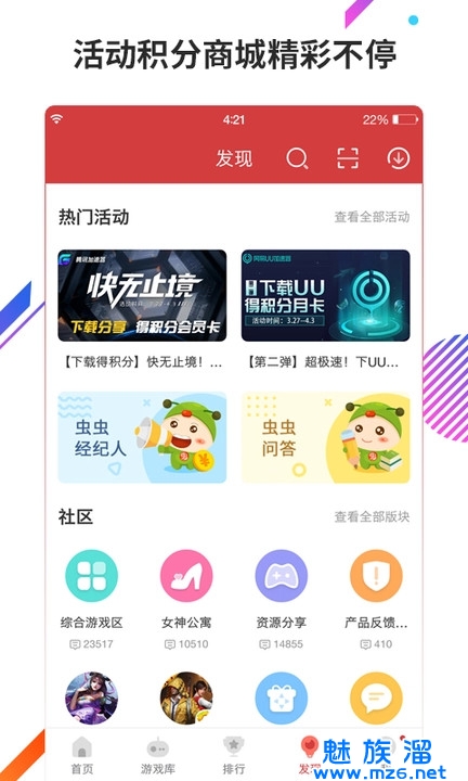 社区海聊版块任你侃大山,分享游戏经验
