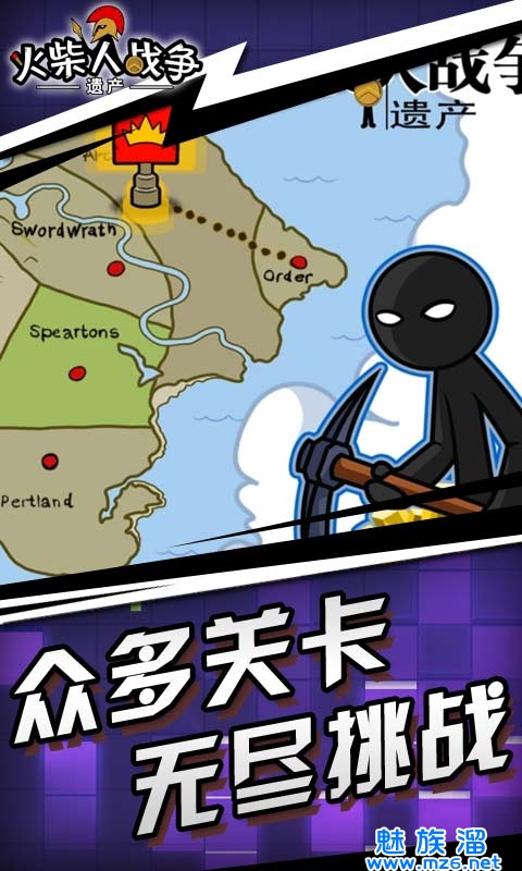 1、收集各种不同性能的火柴人,组建战斗单位,开采黄金或是发起战争争夺领土;