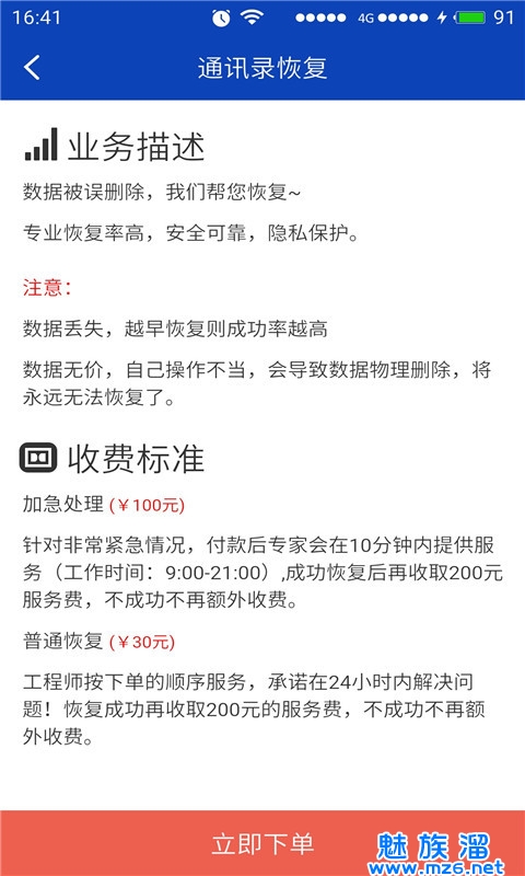 1、加急通道,专家服务:针对数据非常重要紧急的情况,付款后,恢复专家会在10分钟内提供服务,恢复成功率高!