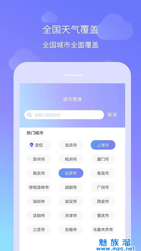 2、用户可以在这里添加多个城市的天气预报,方便用户快速的进行切换观看;