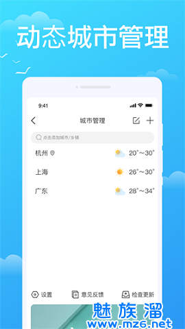 懒人天气预报最新版本是一个可以用于天气预报和查询的软件可以随时获取各种天气数据,可以轻松在线查询全国各地天气,一键获取降雨量、气温、湿度、穿衣指南等数据,可以随时了解未来十五天的天气,满足用户需求,随时获取各种天气信息。有需要的小伙伴就快来mz6网下载试一试吧。